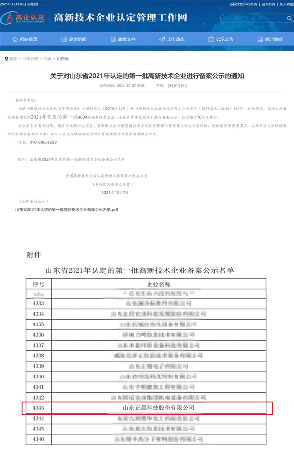 高新技术企业认定传来捷报!近日,全国高新技术企业认定管理工作领导小组办公室公布了山东省2021年第一批高新技术企业名单。九州体育_九州体育·(中国)官方网站榜上有名。