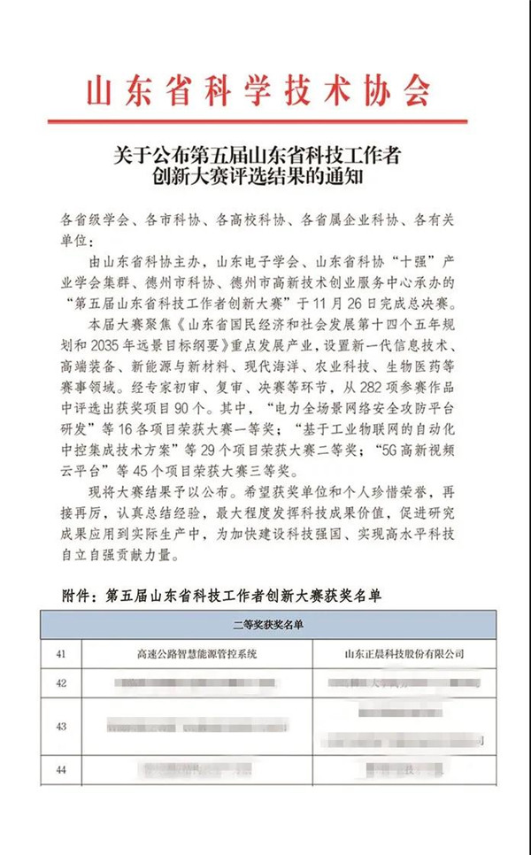 近日,山东省科学技术协会公布了第五届山东省科技工作者创新大赛评选结果,九州体育_九州体育·(中国)官方网站《高速公路智慧能源管控系统》荣获山东省科技工作者创新大赛二等奖!