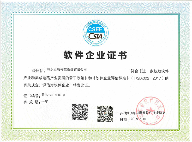 软件企业属于国家重点支持的具有高成长性的创新型企业,具有较强的科技创新能力及潜在经济价值。正晨股份一直坚持自主创新,站在时代的前沿,为客户提供先进的科技产品和优质服务。“软件企业”荣誉称号是正晨股份在科技创新发展上的重要里程碑,不仅是对正晨股份整体技术水平的高度肯定和认可,同时也将激励公司后期继续发挥在软件产品开发领域的优势,有利于正晨在未来的发展中形成持续创新的机制。