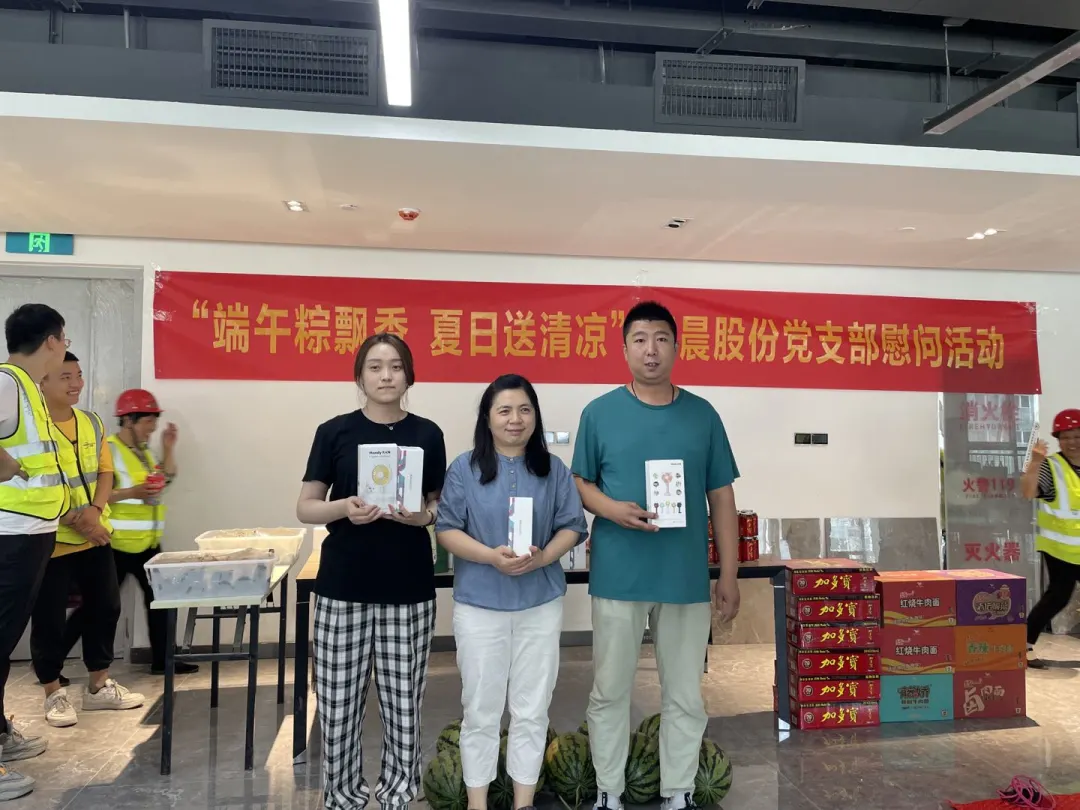 浓情端午粽飘香,走访慰问送清凉。随着气温攀升,奋斗在一线岗位的职工正经历着一场特别的“烤”验。恰逢五月端午,为做好防暑降温工作,喜迎端午佳节,6月11日正晨股份党支部在智能交通产业园项目开展了“端午粽飘香 夏日送清凉 ”主题活动,为奋战在一线的职工送去清凉与欢乐,让员工切实感受到公司及组织的关爱。